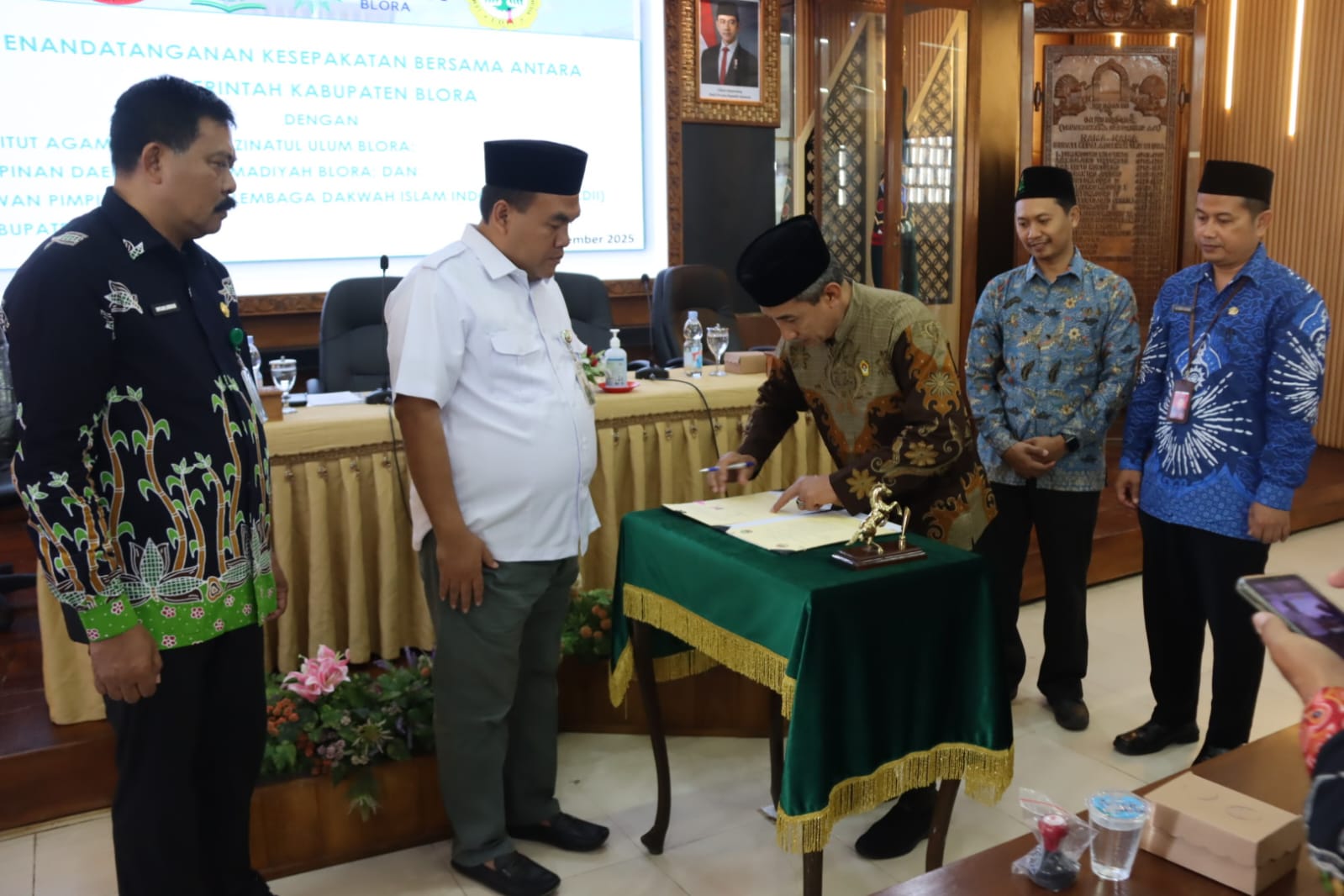Blora – Pemerintah Kabupaten Blora dan Dewan Pimpinan Daerah Lembaga Dakwah Islam Indonesia (DPD LDII) Kabupaten Blora menjalin kerja sama melalui penandatanganan Kesepakatan Bersama tentang Pengembangan Pertanian Organik di Kabupaten Blora. Penandatanganan ini berlangsung di Ruang Pertemuan Sektretariat Kabupaten Blora , Jumat (28/11/2025), dengan disaksikan oleh sejumlah pejabat daerah,
