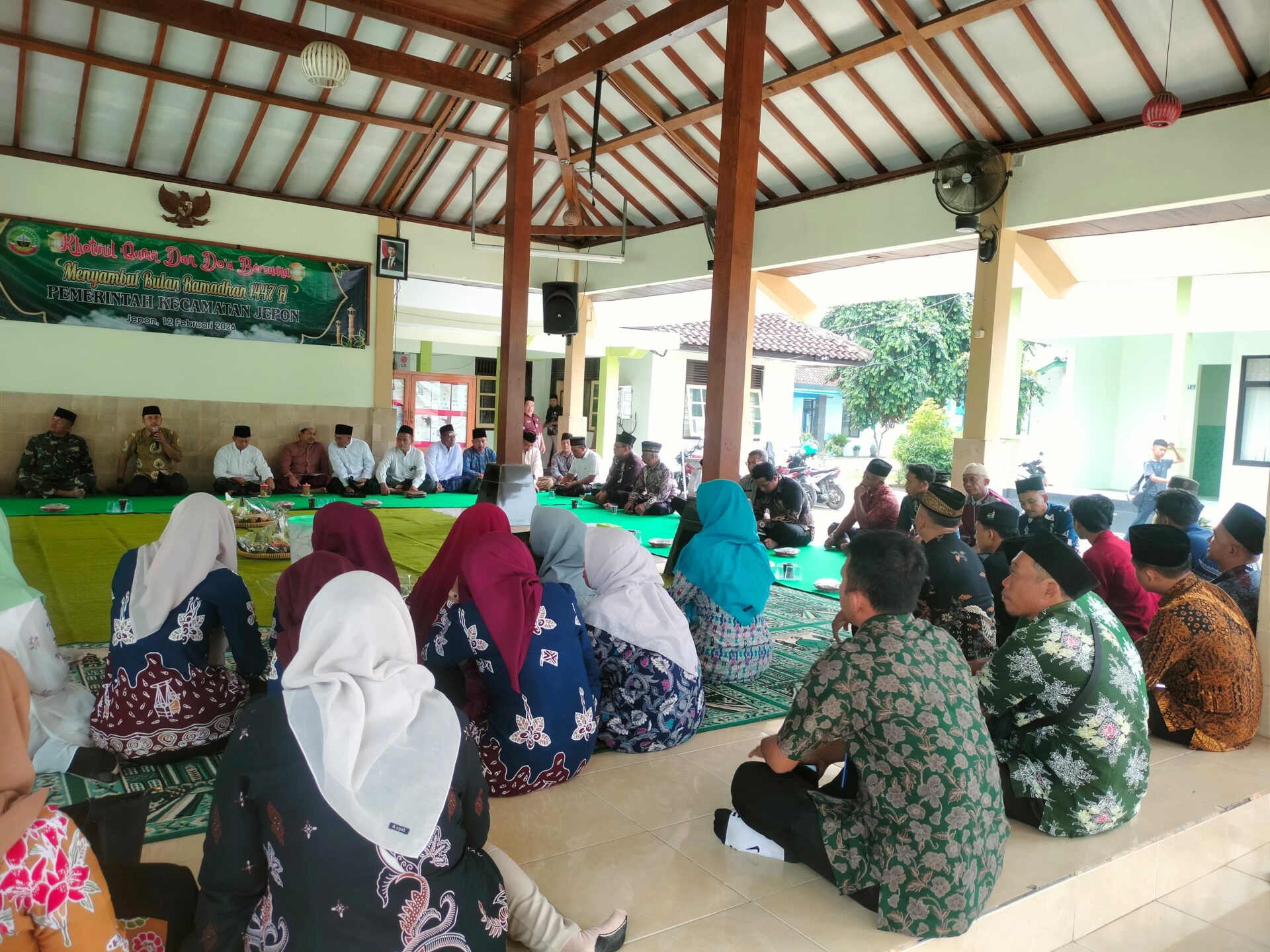JEPON, BLORA – Menjelang datangnya bulan suci Ramadan 1447 H, Pimpinan Cabang (PC) Lembaga Dakwah Islam Indonesia (LDII) Kecamatan Jepon turut serta dalam kegiatan spiritual bertajuk “Khotmil Qur’an dan Doa Bersama”. Acara khidmat ini diselenggarakan oleh Pemerintah Kecamatan Jepon dan bertempat di Pendopo Kecamatan Jepon pada Kamis (12/02).